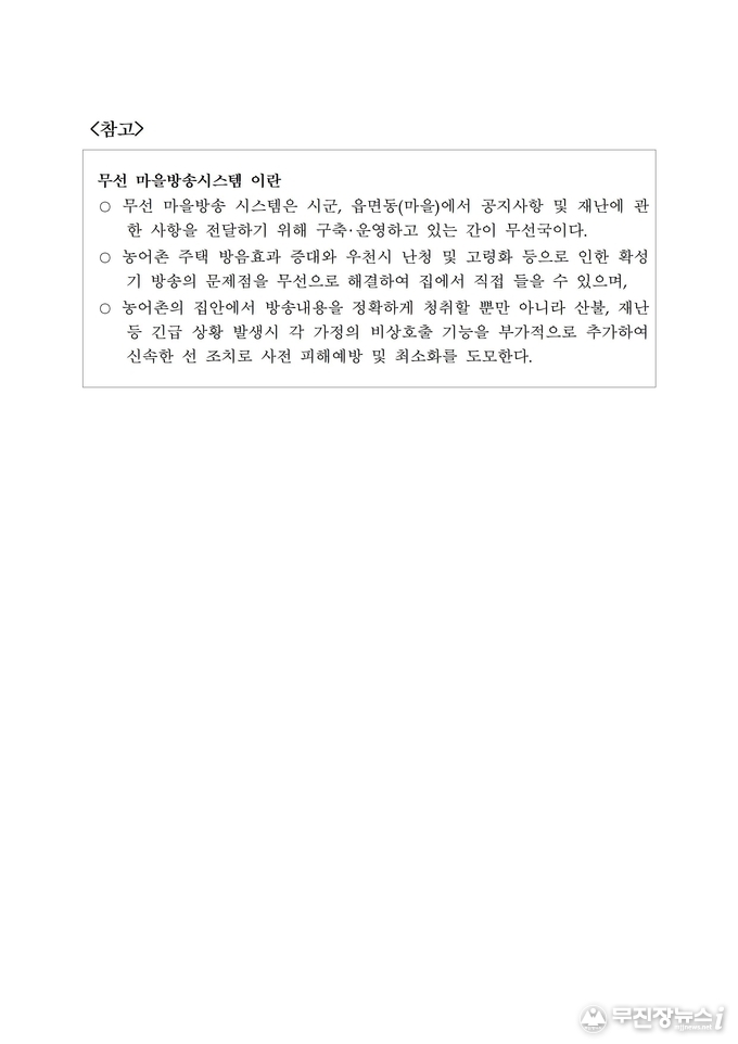 전북도는 전국 최초로 무선 마을방송시스템의 주파수 혼‧간섭 문제를 해결해 신속한 재난 대응체계를 갖추게 됐다.