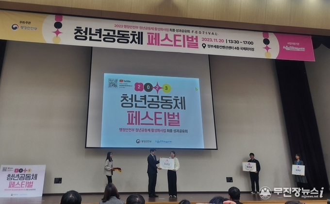 전북도와 전북청년허브센터(전북창조경제혁신센터)가 지난 20일 행안부 주관으로 개최된 ‘2023년 청년공동체 최종 성과공유회’에서 완주 ‘막동막순협동조합’이 우수 청년공동체로 선정돼 행안부 장관 표창을 수상했다고 밝혔다.