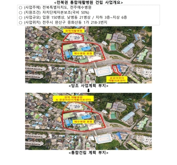 전북특별자치도는 ’19년 공공어린이재활의료센터, ’21년 권역재활병원 건립사업 기관으로 선정되었으며, 현재, 지역 장애인에게 보다 체계적인 생애주기별 재활의료 서비스를 제공하기 위해 2개 사업을 통합하여 ’26년 말 개원·운영을 목표로 건립하고 있다.