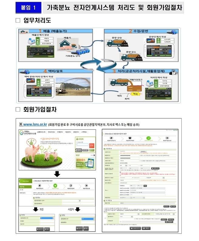 이를 통해 행정감독 기관인 지자체는 가축분뇨 전자인계관리시스템 (www.lsns.or.kr)을 통하여 돼지분뇨가 어디에서 배출․운반․처리되고, 액비가 어디에서 살포되었는지를 실시간으로 확인할 수 있다.