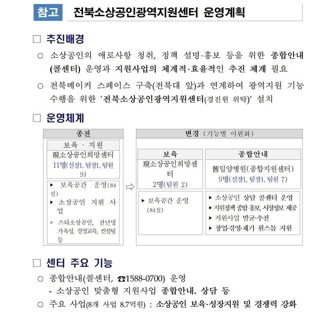 전북도는 오는 14일 舊일양병원 부지에서 소상공인희망센터의 명칭을 ‘전북소상공인광역지원센터’(이하 광역지원센터)로 변경해 개소한다고 밝혔다.