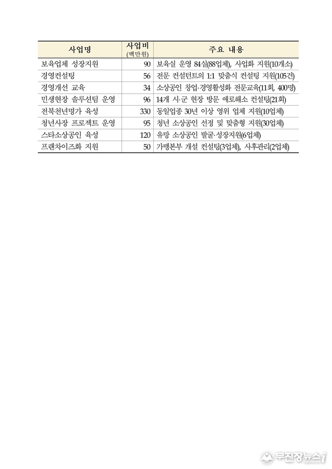 (알파:α) 도내 소상공인들이 중앙부처, 지자체 지원사업 등 정보 부족으로 인해 정책수혜에서 제외되는 일이 없도록 궁금증 해소 및 불편사항 접수, 정책 건의 창구 기능을 할 수 있는 소상공인 전문 콜센터를 운영하여 정책 수혜의 사각지대 제로를 목표로 둘 계획이다.