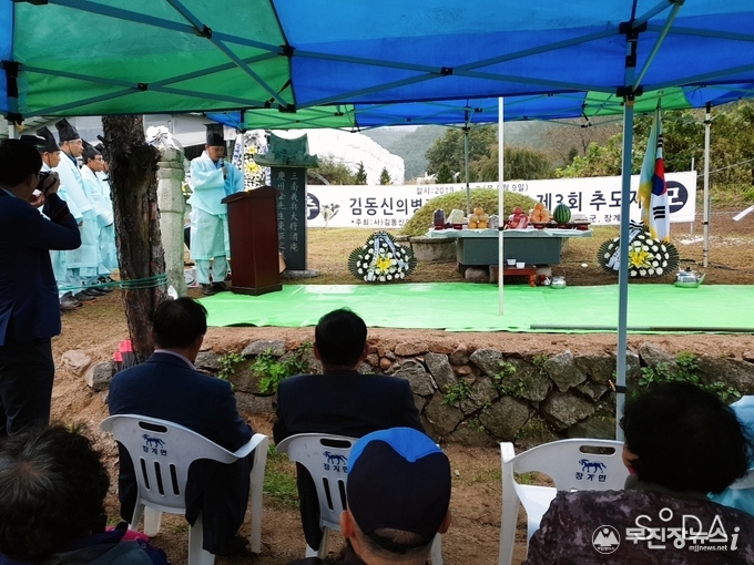 (사)김동신추모사업회가 주최하고 장계덕유회가 주관한 제3회 김동신 의병장 추모제가 7일 장계면 동명마을 묘역에서 김동신 의병장 후손 및 단체 회원 등 100여명이 참석한 가운데 거행했다.
