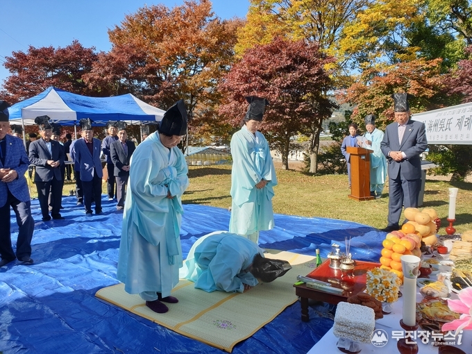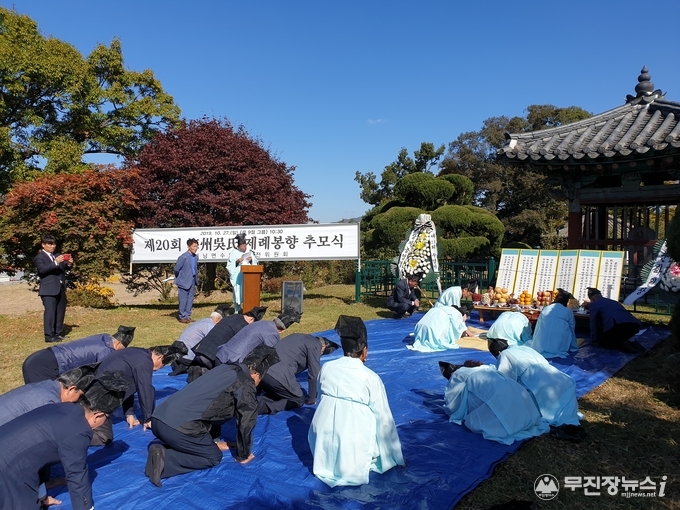 제20회 해주오씨 제례봉향 추모식이 27일 김연식 면장과 해주오씨 종친, 각 기관·사회단체장, 주민 등 100여명이 참석한 가운데 장수군 계남면 고정마을 수열비에서 진행됐다.