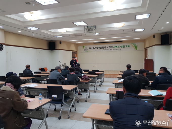 이번 교육은 농어촌민박의 체계적인 관리와 서비스 수준 제고를 위한 것으로 민박협회 손진동 강사를 초빙해 화재예방을 위한 구비시설 및 소화기 사용법, 응급상황 발생 시 대처법, 고객 서비스를 위한 노력 등 소방안전, 식품위생, 서비스 3개 분야로 진행했다.