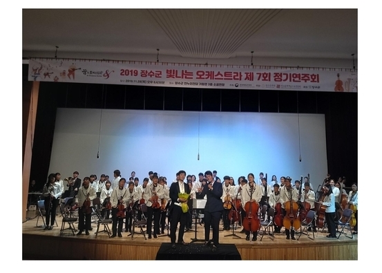 장수문화원이 주최/주관하고 장수군과 한국문화예술진흥원, 농협장수군지부. 장수군 야구연합회에서 후원하는 “기적의 오케스트라” 2019 빛나는 오케스트라 제7회 정기연주회가 11월 28일 오후 6시30분 장수한누리전당 소공연장에서 성황리에 열렸다