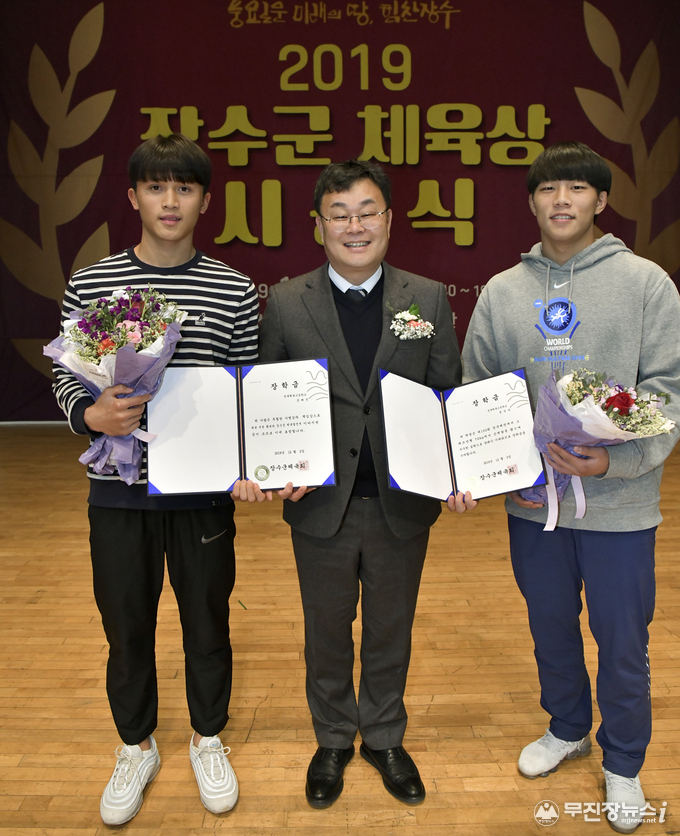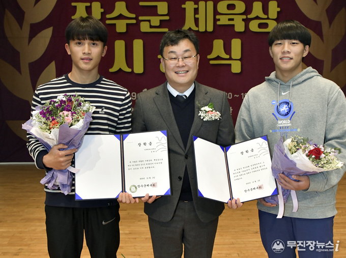 전문체육 장학금은 장수출신으로 제100회 전국체전에서 레슬링 은메달(그레꼬로만형)을 차지한 정상연 선수와 육상(100m·200m) 결승라운드 진출에 성공한 문해진 선수가 받았다.