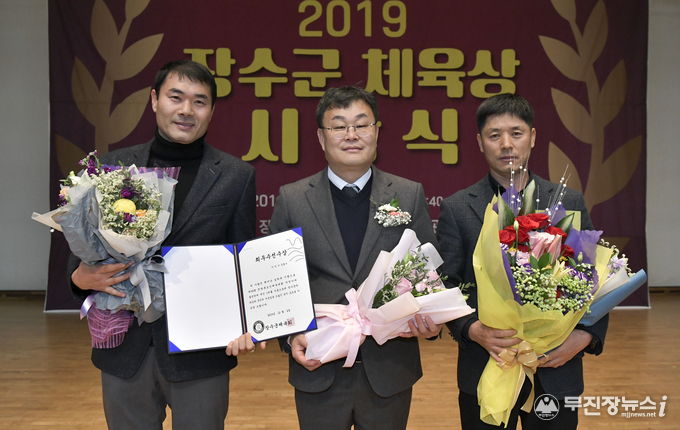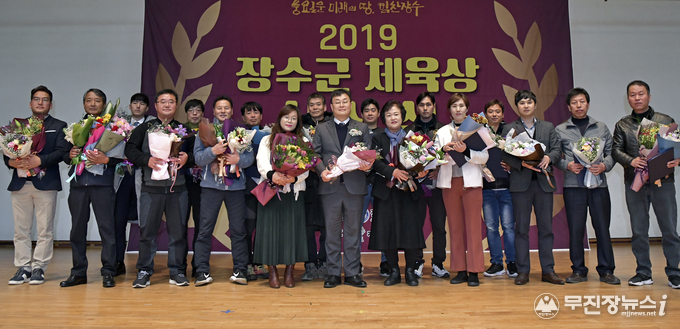 장수군이 올해 군민들의 체육발전과 체육활성화에 기여한 유공자들에게 감사의 마음을 전달하고 화합과 결속을 다지기 위한 ‘2019년 장수군 체육상 시상식’을 지난 2일 한누리전당 산디관에서 개최했다.