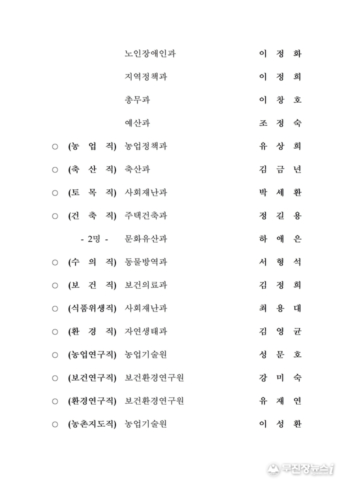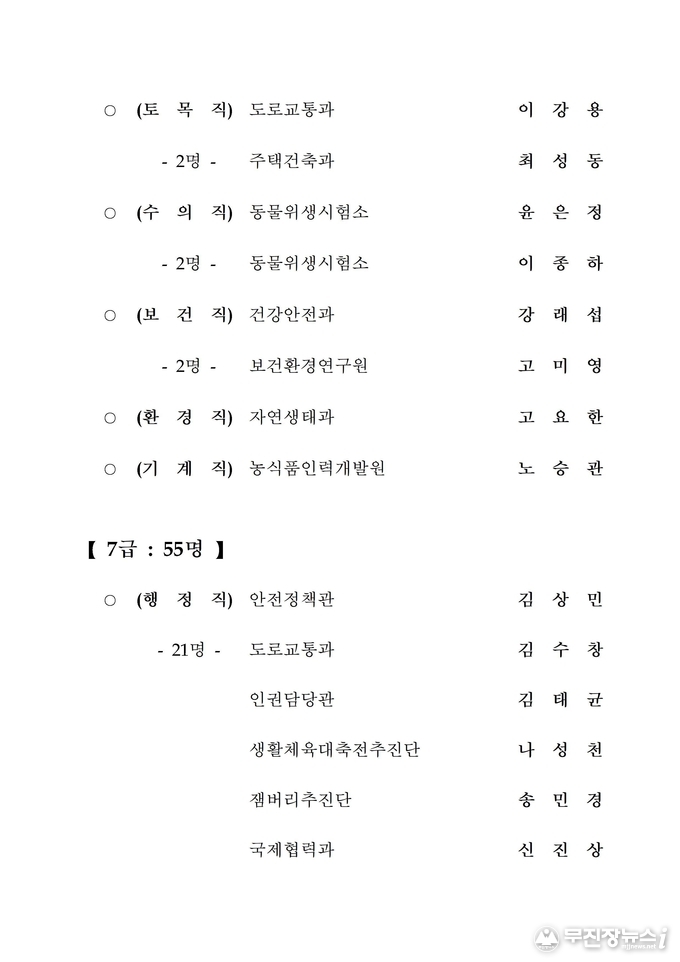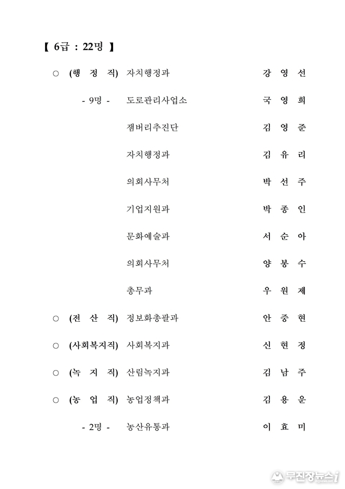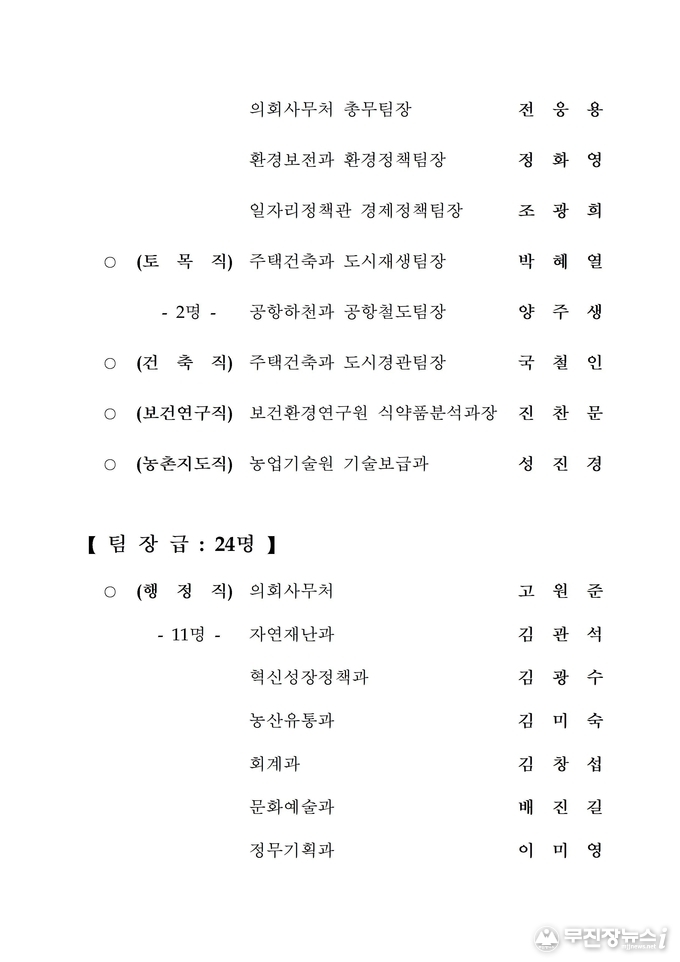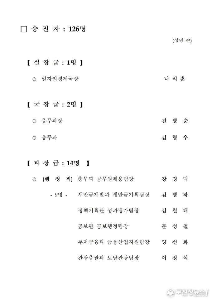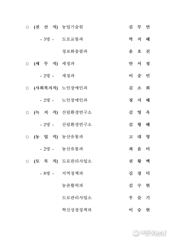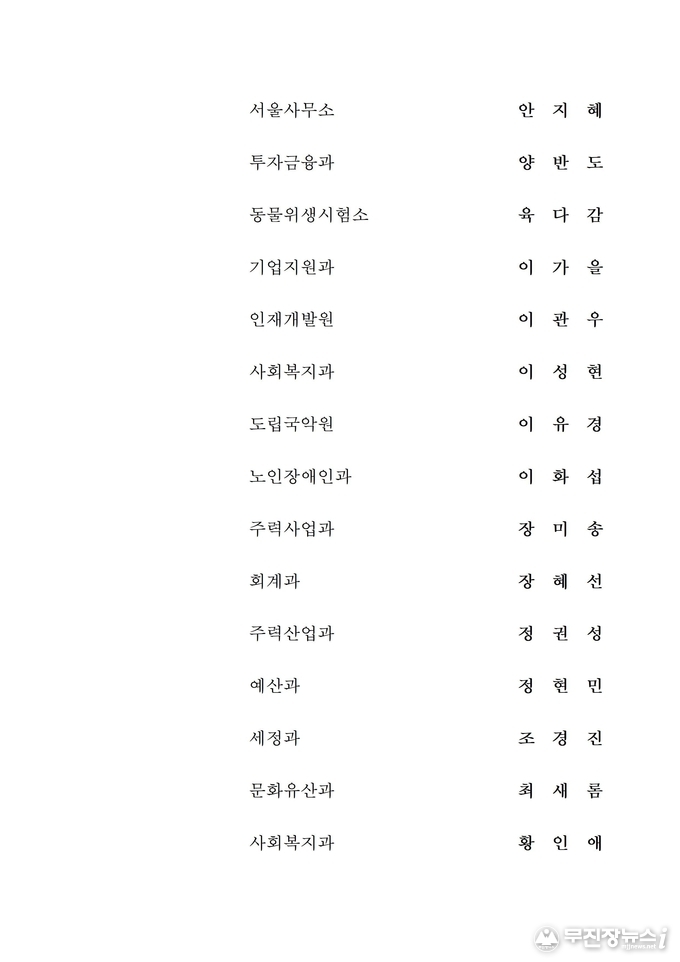 전북도청 2020년 상반기 정기인사 승진내정자 발표