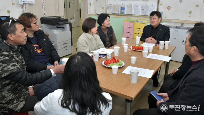 군은 올해 정부의 보육교직원 인건비 지원기준 미달로 운영위기를 맞은 산서어린이집의 정상운영 대책 마련을 위해 간담회를 열고 산서어린이집 활성화 지원 사업 설명, 어린이집 정상화를 위한 협조 및 대안 등에 대해 논의했다.