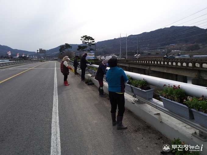 면은 지역주민과 외부차량 통행이 잦은 도로를 중심으로 오스테오스펄멈 등 3종류의 봄 꽃 약 8000본의 꽃을 식재했다.