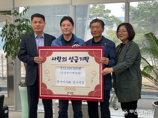 한국마사회 장수목장(목장장 김영진)은 지난 10일 코로나19로 더욱더 힘들게 된 지역주민 취약계층을 위해 사랑의 성금 1200만원을 장계면 지역사회보장협의체에 전달했다.