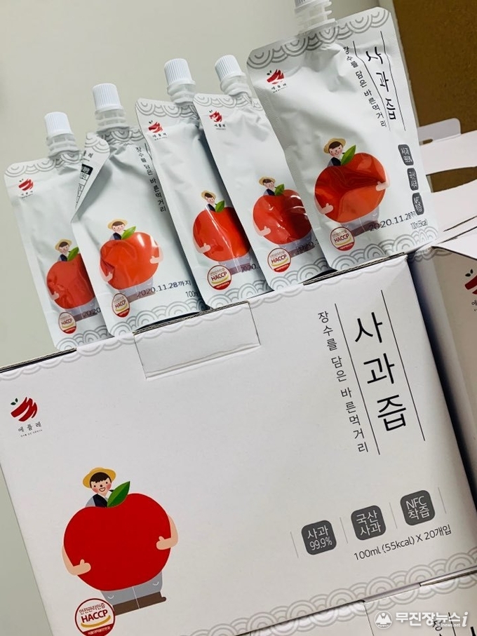 기부된 사과즙은 취약계층과 긴급 돌봄 아동들에게 전달됐다.
