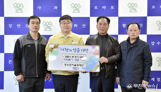 장수군자율방재단은 21일 코로나19 극복을 위한 성금 100만원(장수사랑상품권)을 장수군에 기탁했다.