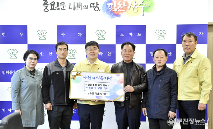 장영수 군수는 “어려운 시기에 소중한 마음을 더해주셔서 감사하다”며 “모두가 어려운 시기이지만 코로나19를 잘 극복할 수 있도록 노력하겠다”고 말했다.