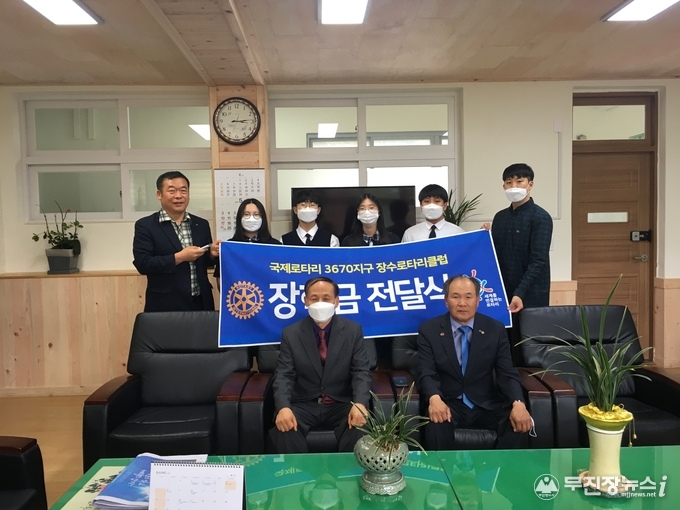 국제로타리3670지구 장수로타리클럽은 21일 장수고등학교(교장 오봉수)를 방문해 봉사동아리 학생 4명에게 장학증서 전달식을 가졌다.