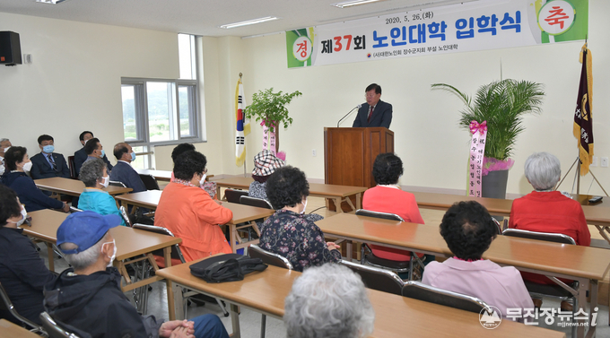 장영수 군수는 “코로나 19로 개강이 당초 계획보다 지연됐지만 대학생활 동안 예방수칙을 준수하여 모든 입학생들이 건강하게 졸업할 수 있도록 협조 부탁드린다”며 “노인대학을 통해 배우는 기쁨과 성취감을 얻고 건강하고 즐거운 노후생활을 보낼 수 있게 되기를 바란다 ”고 말했다.