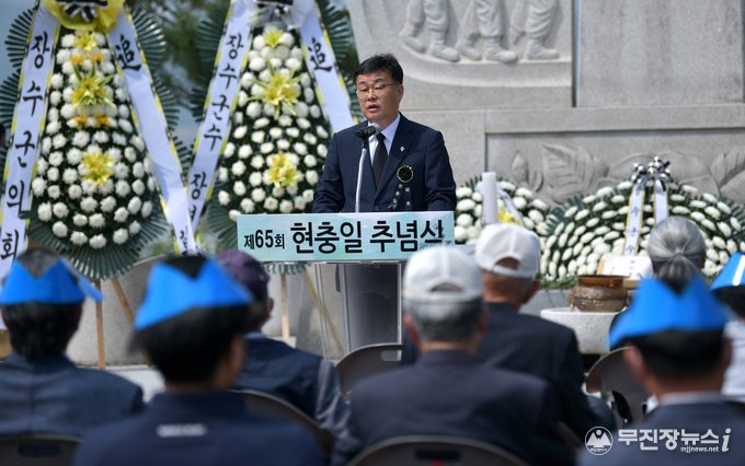 장수군은 6일 장수읍 남산 충혼탑에서 순국선열과 호국영령의 얼을 기리고 추모하는 제65회 현충일 추념행사를 거행했다.