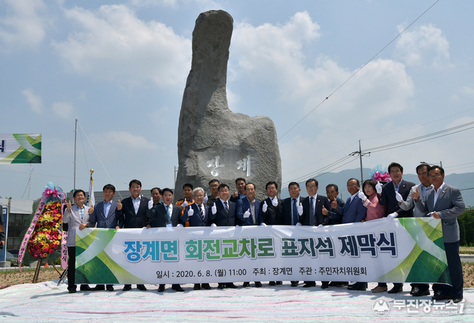 이번 제막식은 제30회 장계면민의 날을 맞아 동인회가 세웠던 장계 표지석을 회전교차로에 이전 설치하며 그 의미를 더했다.