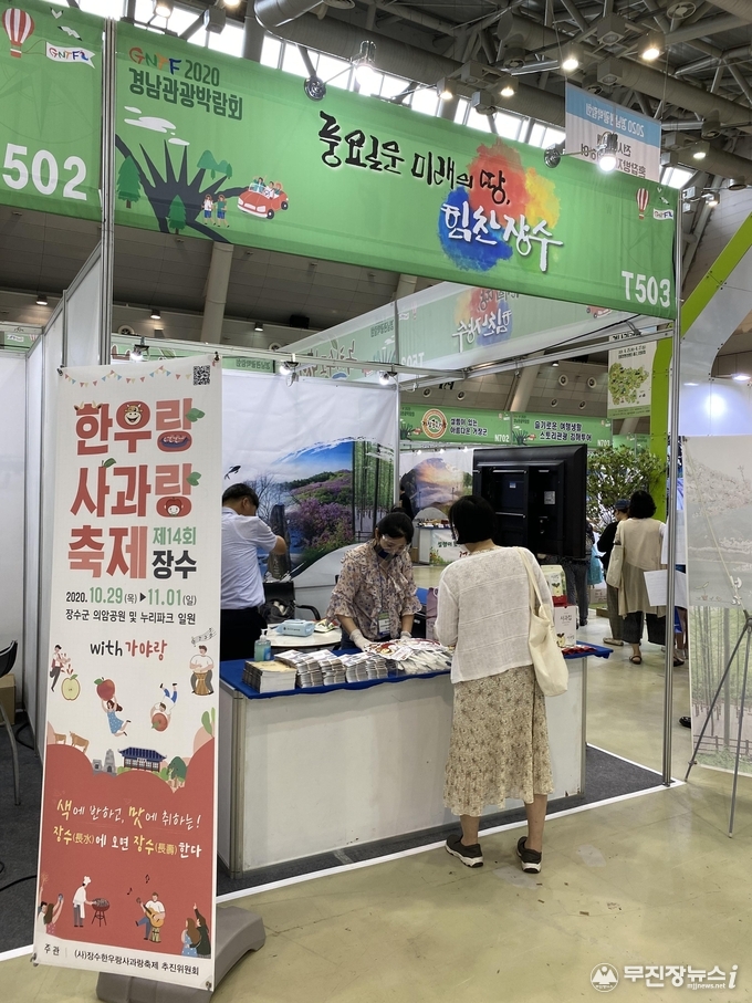 장수군은 25~27일까지 경남 창원컨벤션센터에서 열린 ‘경남관광박람회’에 참가해 장수군의 대표 축제인 제14회 장수한우랑사과랑축제와 장수군의 주요 관광지 및 농·특산물 등을 홍보했다.