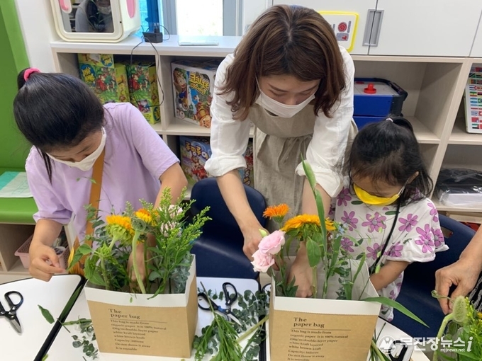 장수군공동육아나눔터(신한 꿈도담터55호점)는 초등 상시프로그램으로 ‘꽃X그림책X미술 콜라보’를 8월까지 진행한다고 6일 밝혔다.