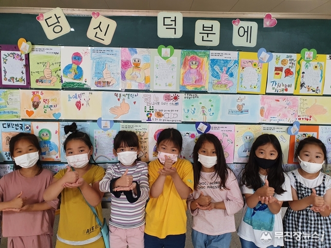 장수초등학교에서는 코로나19 극복 및 확산 방지를 위해 헌신하고 계신 장수군 지역 관계자분들을 응원하고자 전교생이 ‘덕분에 챌린지’에 동참했다고 23일 밝혔다.
