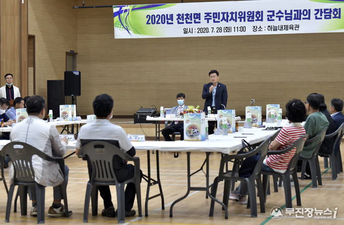 천천면주민자치위원회는 하늘내체육관에서 장영수 군수와 이순창 위원장 등 관계자 30여명이 참석한 가운데 주민자치 활성화를 위한 간담회를 개최했다.