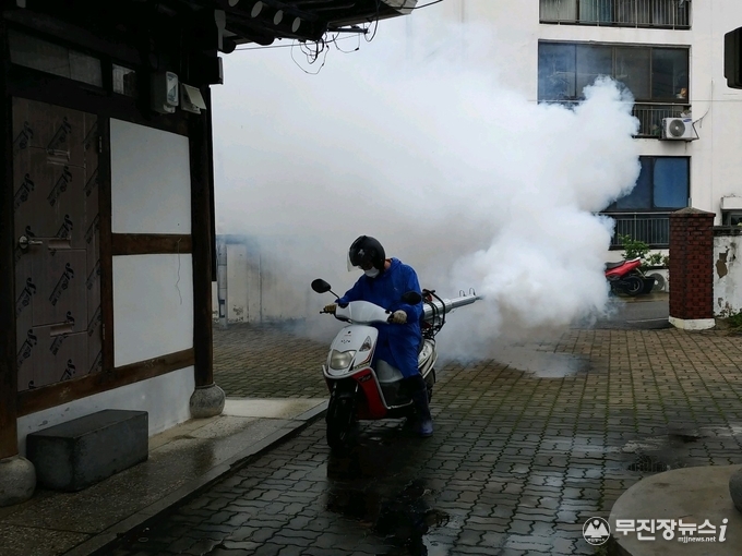 이날 방역을 지켜본 한 어르신은 “후텁지근한 날씨에도 구슬땀을 흘리며 방역을 해줘 정말 고맙다”고 말했다.