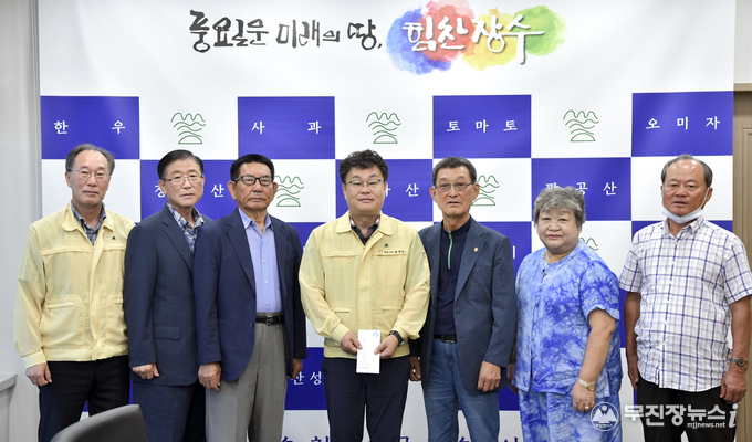 장수군 그라운드골프협회은 10일 집중호우로 인한 장수읍 개정제 붕괴 우려에 따라 한누리전당으로 대피한 주민들을 위해 써달라며 100만원을 장수군에 기탁했다.