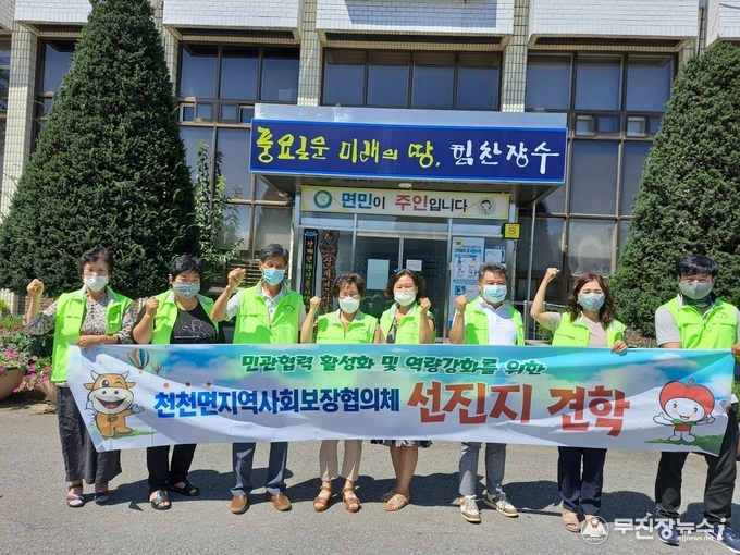 천천면 지역사회보장협의체는 21일 2019년 지역사회보장협의체 우수지역으로 선정된 장계면사무소를 방문해 지역사회보장협의체 운영 및 민관협력, 복지사각지대 및 위기가구 발굴 등에 대해 의견을 교환했다.