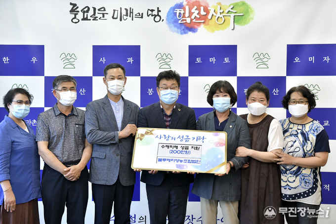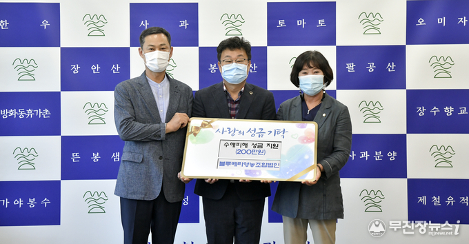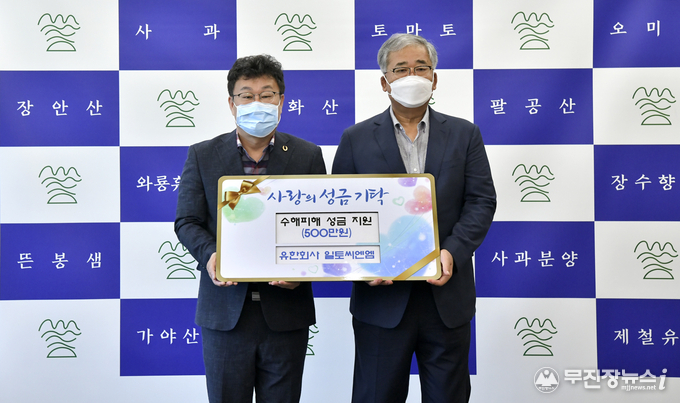 호우로 피해를 입은 이웃 주민들을 위한 온정의 손길이 끊이지 않고 있는 가운데 유한회사 일토씨엔엠(대표 최규연)과 장수블루베리영농조합법인(대표 천승남)은 28일 각각 500만원과 200만원을 장수군에 기탁했다.