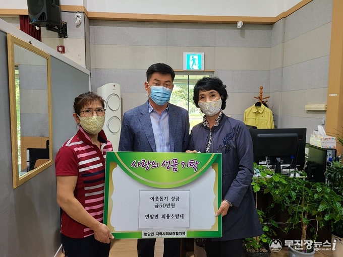 번암면 주민자치위원장(소순배)과 여성의용소방대(대장 이향숙)는 지난 21일 추석 명절을 맞아 어려운 이웃을 위해 사용해달라며 이웃돕기 성금 각 50만원을 번암면에 기탁했다.