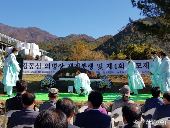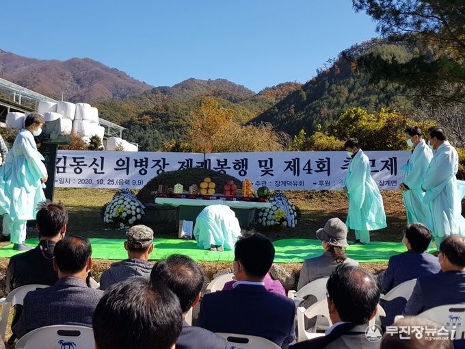 제4회 김동신 의병장 추모제가 25일 장수군 장계면 동명마을 김동신 의병장 묘역에서 거행됐다.
