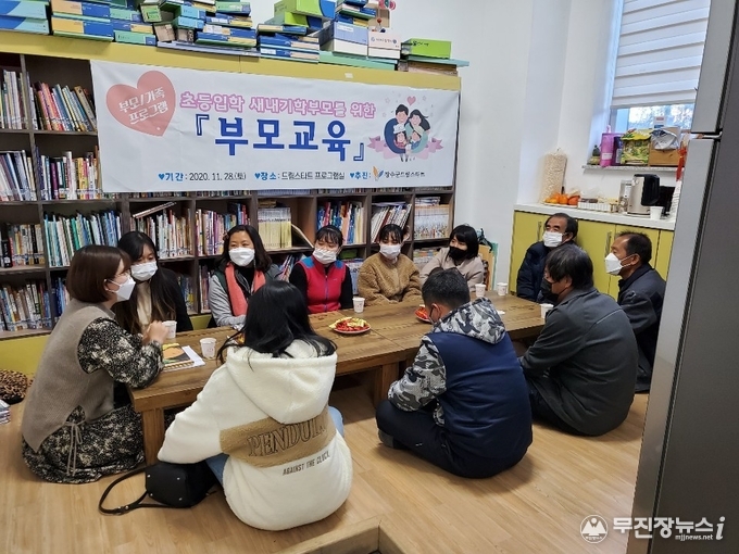 장수군은 28일 드림스타트 상담실에서 2021년 초등학교 입학예정인 드림스타트 아동 부모를 대상으로 ‘자녀의 새로운 환경 적응을 위한 부모의 역할 및 자녀와의 소통법’이란 주제로 「초등입학 새내기 학부모를 위한 부모교육」 프로그램을 진행했다.