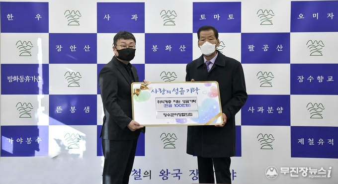 장수군이장협의회는 지난 9일 연말연시를 앞두고 어려운 이웃을 위한 성금 100만원을 장수군에 전달했다.