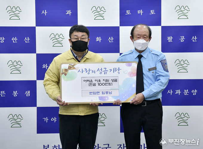 임종남씨는 장수초등학교 졸업생으로 동참모임에 100만원 가량을 개인적으로 지원했으나 올해는 코로나19로 모임이 취소되면서 이웃돕기 성금으로 전달했다.
