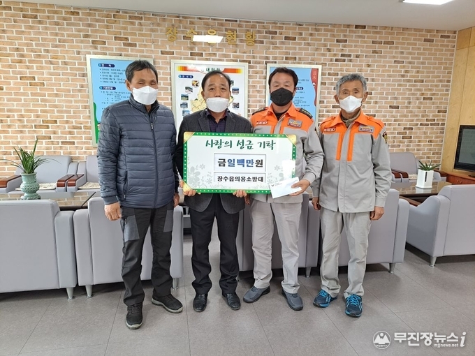 장수읍의용소방대(대장 최용운)는 지난 24일 연말연시를 앞두고 장수읍행정복지센터를 방문하여 지역 내 어려운 이웃을 돕는데 사용해 달라며 이웃돕기 성금 100만원을 전달했다.