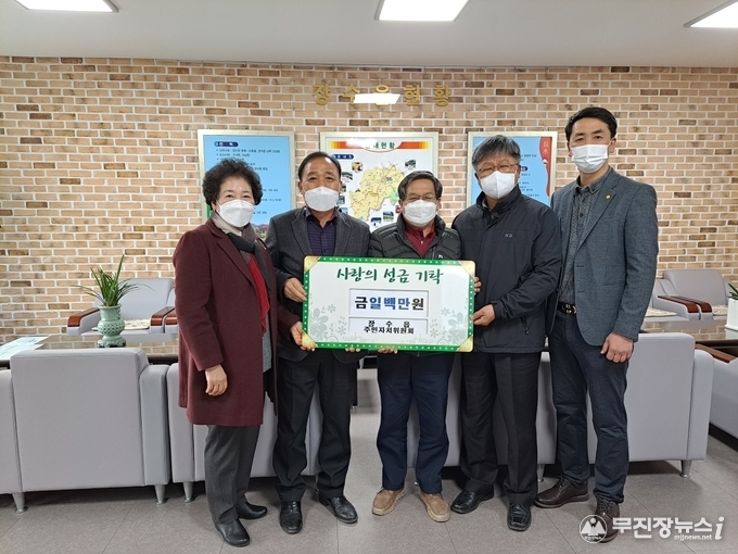 장수읍주민자치위원회(위원장 김종운)는 연말연시를 맞아 이웃돕기 성금 100만원을 장수읍지역사회보장협의체(공동위원장 최대현,송재기)에 기탁했다.
