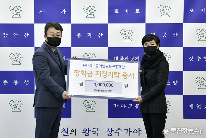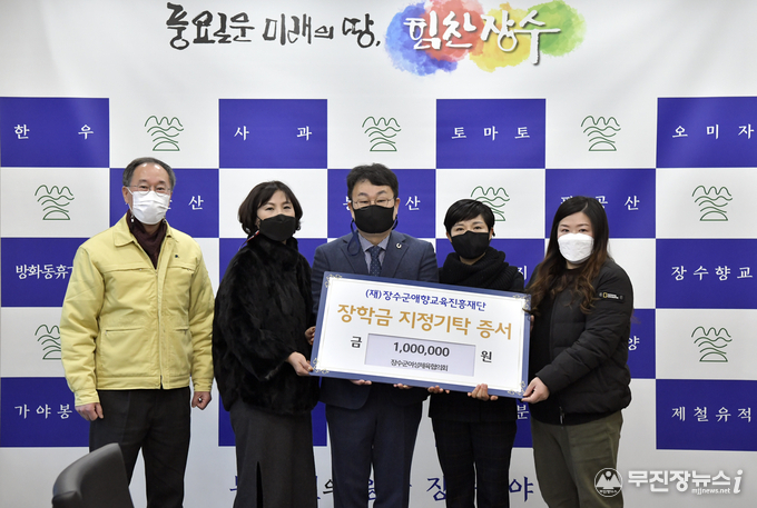 한선미 장수군여성체육협의회장은 “장수군의 지역발전을 위해서는 지역인재 육성사업에 더욱 관심을 가져야 한다”며 “적은 금액이지만 지역인재육성 활성화 사업에 보탬이 되길 바란다”고 말했다.