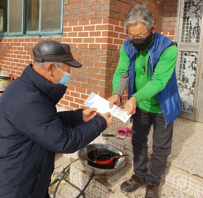 재난지원금 지급은 송범수 이장과 이승열 개발위원장이 코로나19 방역 수칙을 준수하며 세대주명부를 바탕으로 각 가구에 방문해 직접 전달한다.