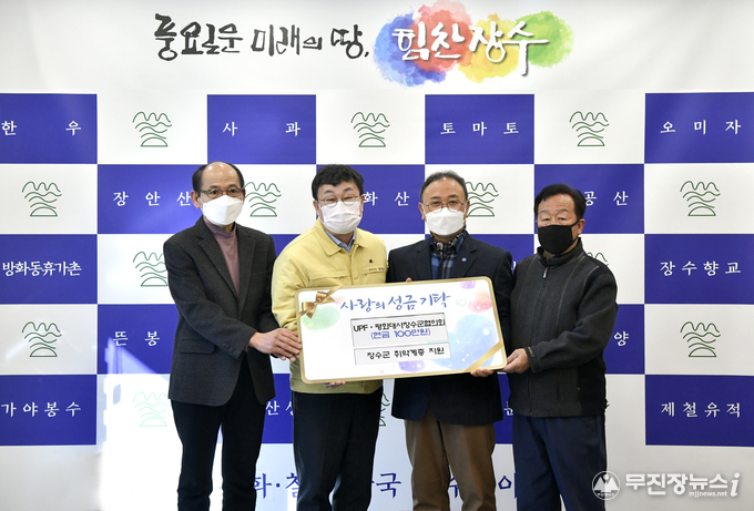 또 UPF⦁평화대사장수군협의회(회장 박홍민)에서도 성금 100만원을 장수군에 전달하며 이웃 사랑 나눔에 동참했다.