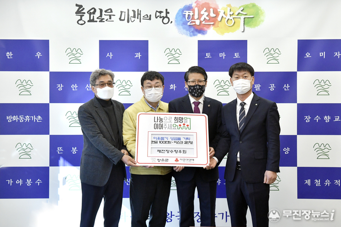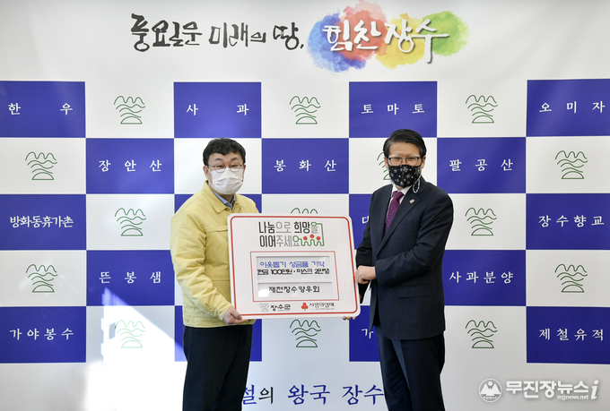 재전장수향우회(회장 이군형)는 설 명절을 앞두고 성금 100만원과 취약계층을 위한 kf94 마스크 2만장을 장수군에 기탁했다.
