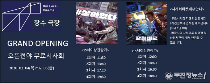 장수 한누리영화관이 오랜 휴관을 끝낸 개관 기념으로 무료 시사회를 개최한다.