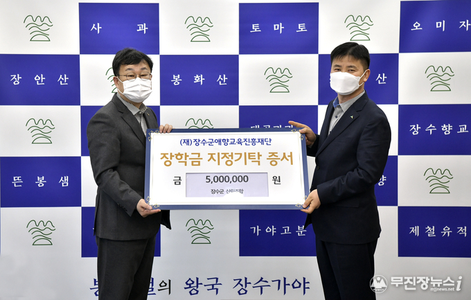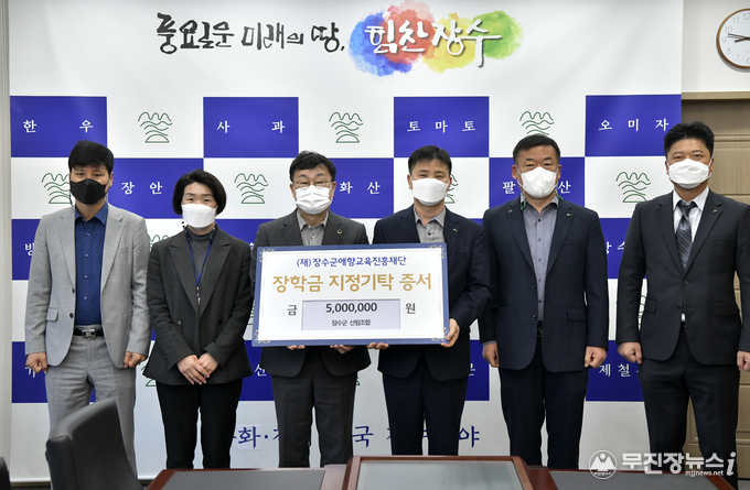 장수군산림조합은 10일 지역 인재 양성을 위한 장학금 500만원을 (재)장수군애향교육진흥재단에 기탁했다.