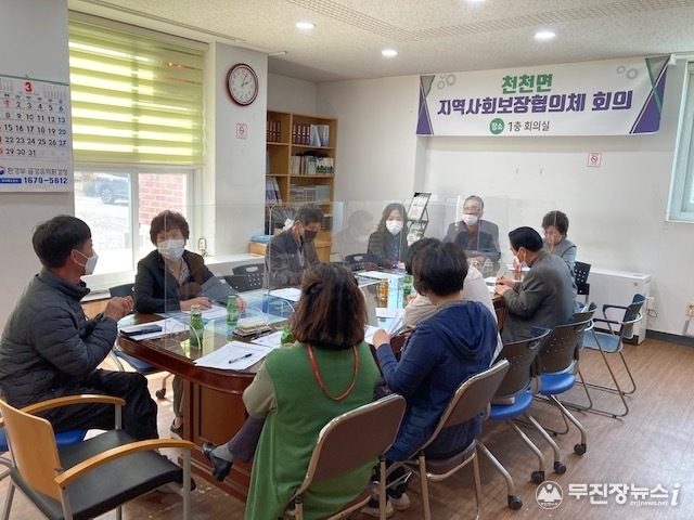 장수군 천천면 지역사회보장협의체(공공위원장 배종수, 민간위원장 이명자)는 면사무소 1층 회의실에서 2021년도 지역사회보장협의체 2차 회의를 개최했다고 22일 밝혔다.