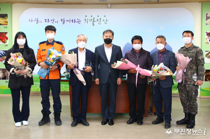 진안군은 7일 군수실에서 성수면 용포리 포동마을 야산에서 실종된 주민을 수색하는 데 적극 도움을 준 유관기관과 성수면에 감사패를 전달하고 격려했다.