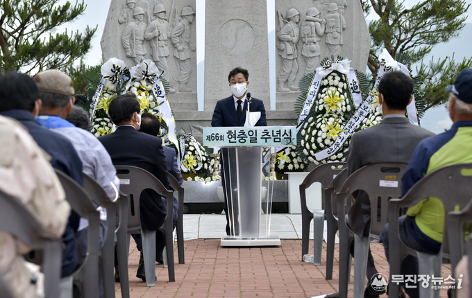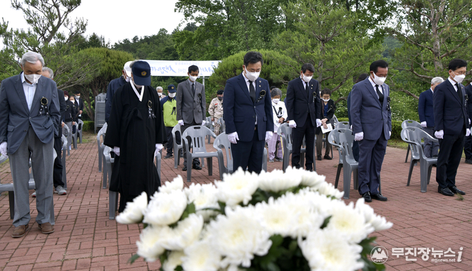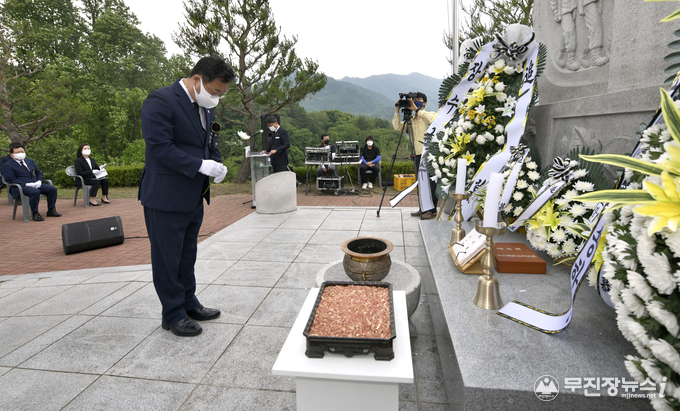 코로나19 예방 사회적거리두기 수칙 준수를 위해 행사규모와 내용, 참석인원 등을 축소해 개최한 이번 추념행사에는 장영수 군수, 김용문 장수군의회의장을 비롯한 보훈‧안보단체장, 국가유공자와 유가족, 기관단체장 등 50여명의 군민이 참석했다.
