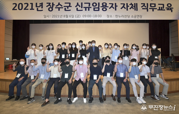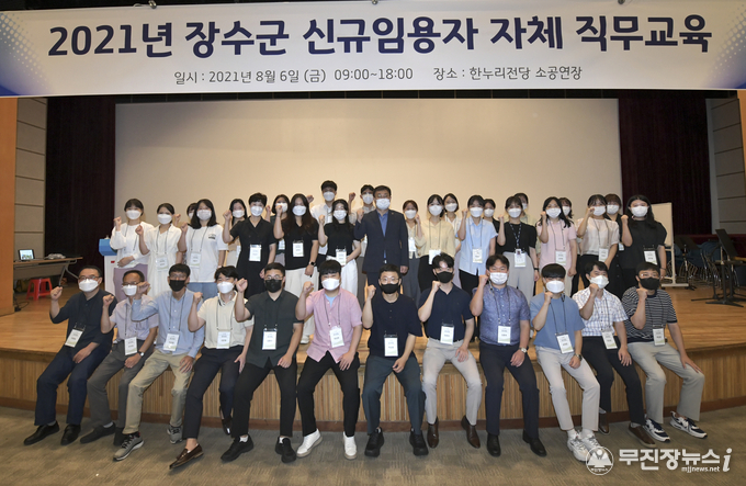 장수군은 6일 한누리전당 공연장에서 신규공무원 35명을 대상으로 조직 적응력 향상과 올바른 공직 윤리관 확립을 위한 자체 직무 교육을 실시했다.