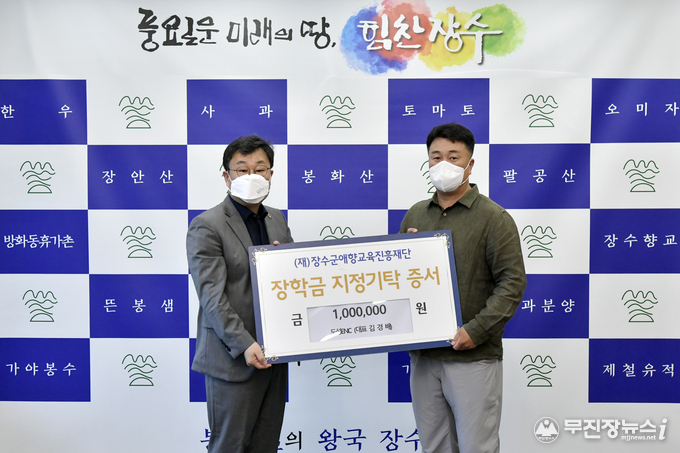 김경배 도성ENC 대표는 “항상 지역인재 양성을 위해 애써주시는 애향재단에 감사드리며, 작년에 이어 올해도 코로나19로 모두 힘든 상황인데 우리의 작은 손길이나마 장수군의 교육발전에 조금이라도 보탬이 됐으면 하는 바람이다”라고 말했다.