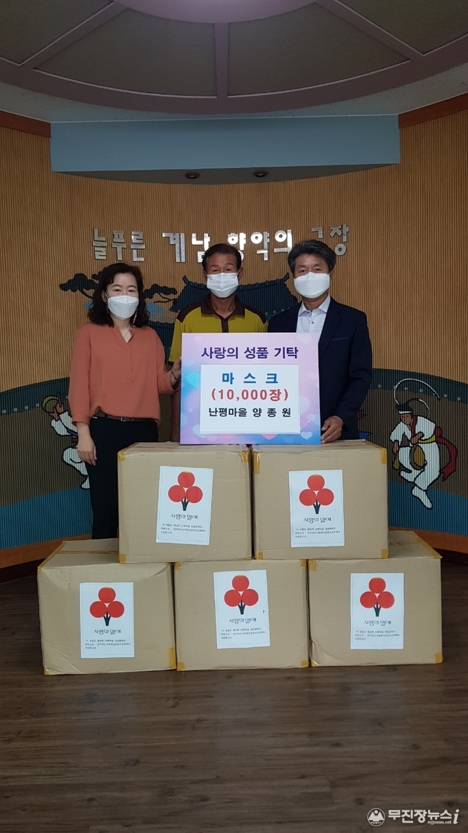 장수군 계남면 난평마을 양종원씨가 지난 17일 계남면사무소를 방문해 취약계층을 위해 마스크 10,000장을 기탁했다.